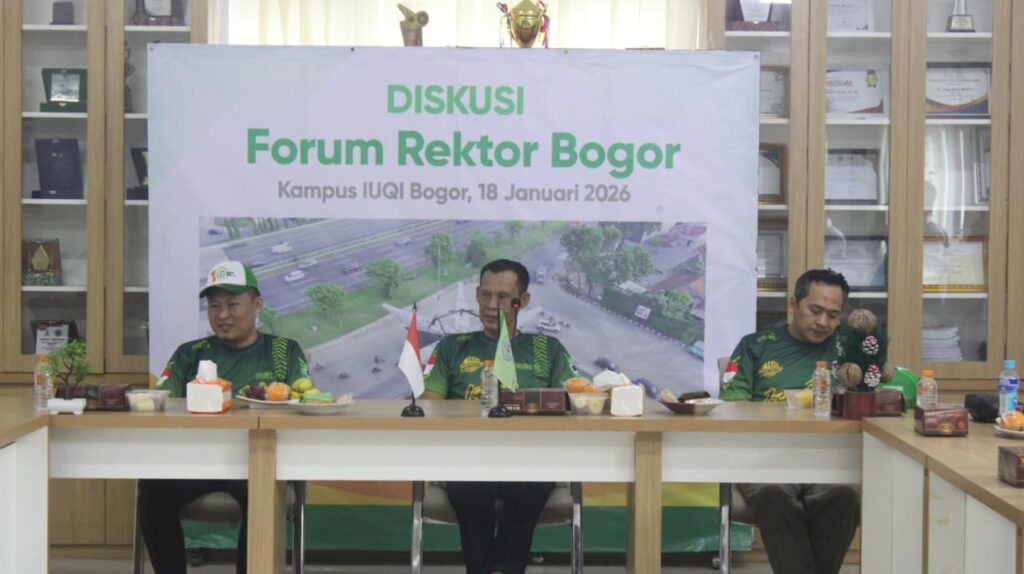 Forum Rektor Bogor menjadi ruang silaturahmi sekaligus diskusi strategis antara pimpinan perguruan tinggi dengan Pemerintah Kabupaten Bogor. Kegiatan yang dilaksanakan pada Minggu (18/01) di Ruang Rapat Gedung B IUQI ini turut dihadiri oleh Wakil Bupati Bogor, sebagai bentuk komitmen bersama dalam membangun daerah, khususnya di sektor pendidikan.