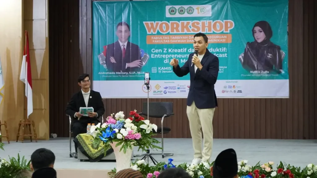 Fakultas Dakwah dan Komunikasi Islam (FDKI) menggelar Workshop bertajuk “Podcast di Era Media Sosial” pada Kamis, 15 Januari 2025, sebagai rangkaian kegiatan Pekan Harlah Satu Dekade. Kegiatan ini berlangsung dengan khidmat dan penuh antusiasme dari mahasiswa.