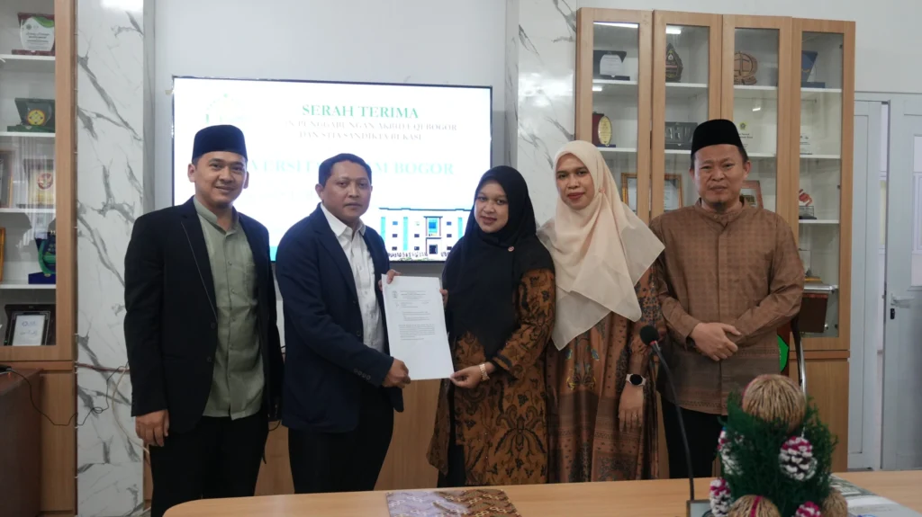 Bogor, 2 Maret 2026 — Momentum bersejarah kembali tercatat dalam perjalanan pendidikan tinggi di Kabupaten Bogor. Akademi Kebidanan UQI Bogor resmi bergabung dengan STIA Sandikta Bekasi menjadi Universitas Islam Bogor, ditandai dengan serah terima Surat Keputusan (SK) Izin Penggabungan yang berlangsung khidmat.